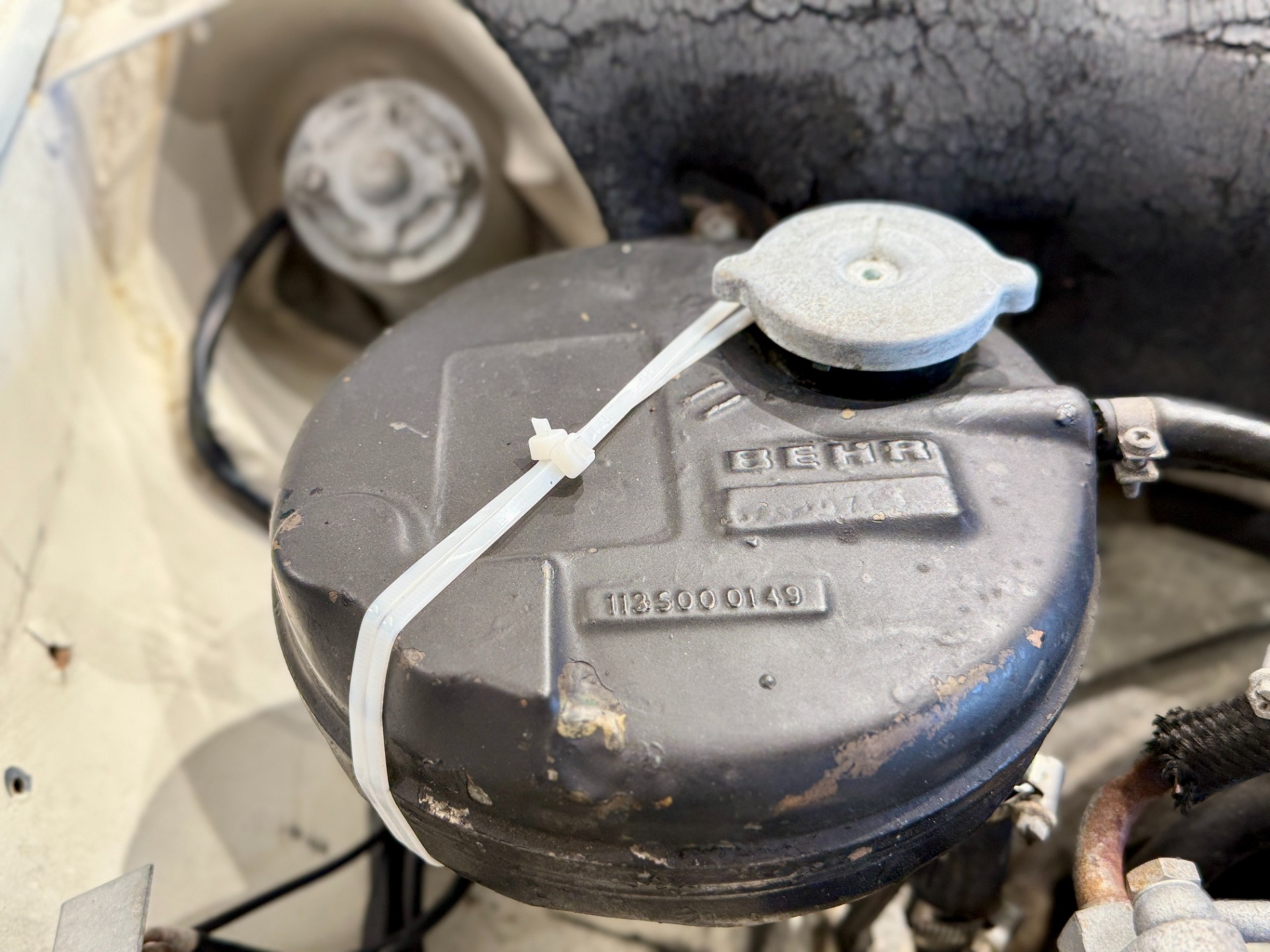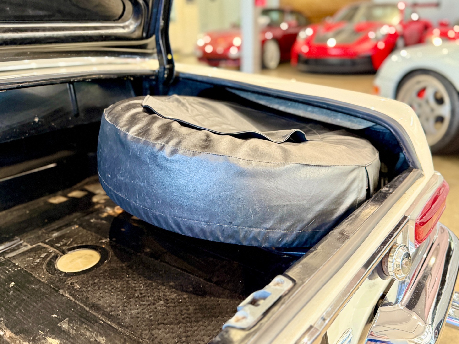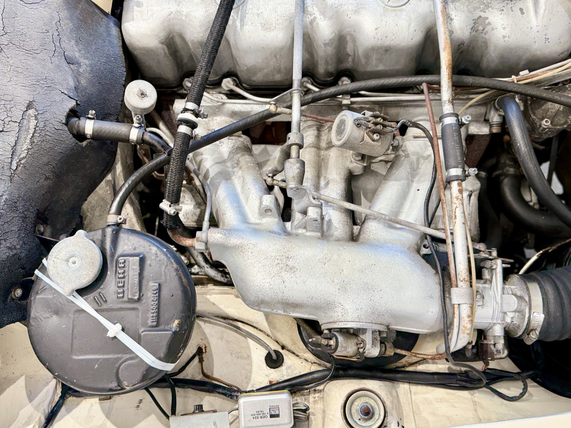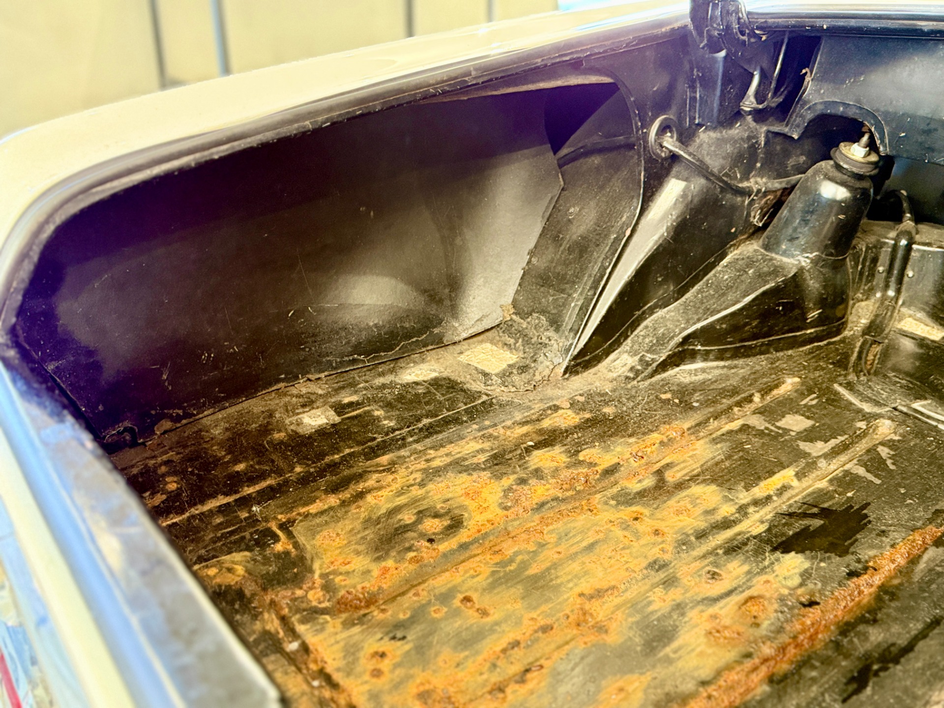 This is a mostly original car which displays patina consistent with the older repaint. The color is original. There is evidence of a previous repair to the front end of the car and there are two small rust spots in the floor pan. The rockers, firewall and trunk are solid. The trasnmission has been rebuilt. There are typical oil leaks at the engine and differential and the car will need 4 new tires due to the age of the current set.