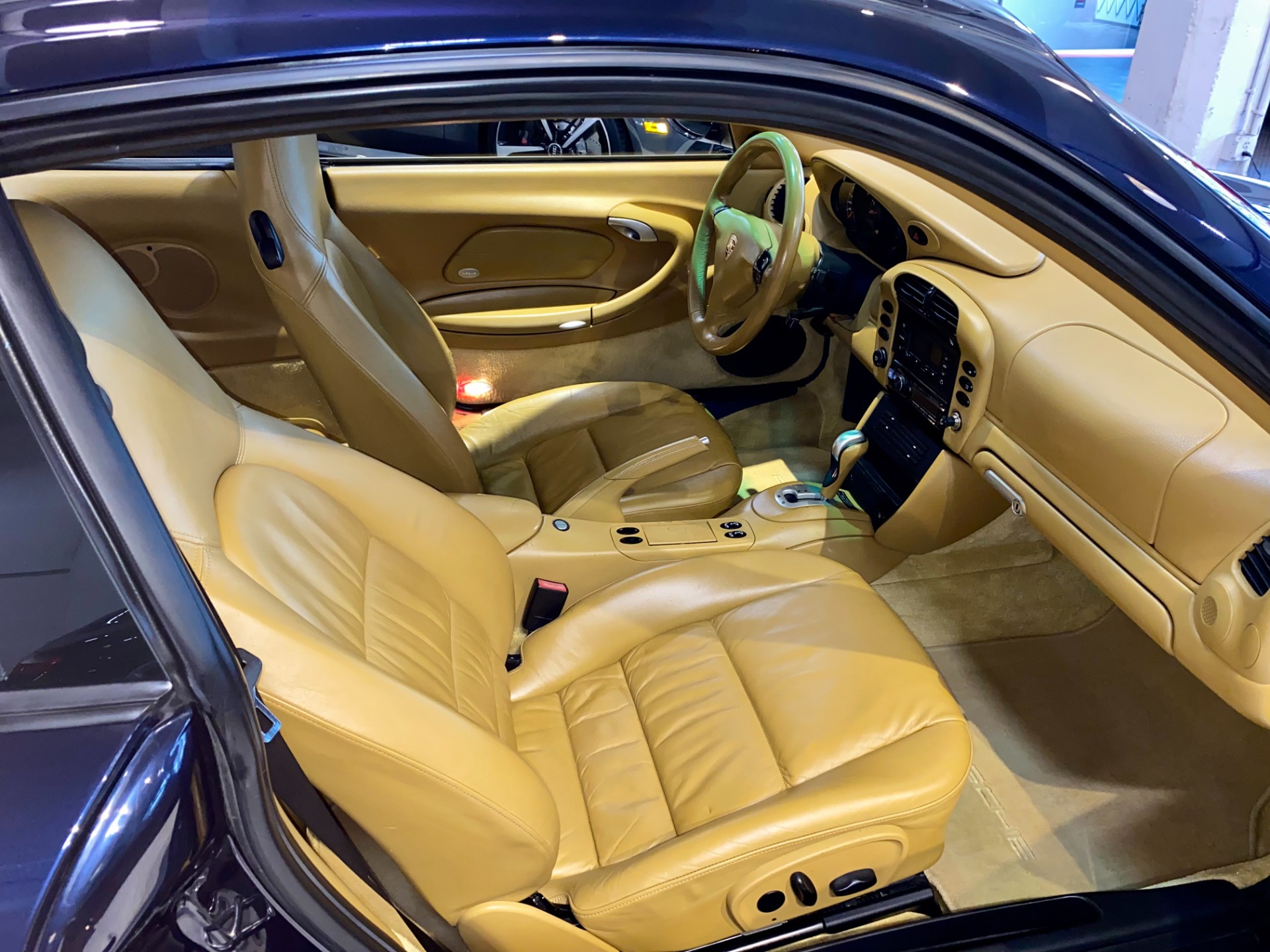 Presenting a well care for driver's example of a highly optioned late production 996 Coupe. A California vehicle since new, the car is in excellent overall condition and shows to be very well kept with just over 100k miles. It shows no sign of winter or inclement weather driving, the undercarriage and engine casings are free of environmental deterioration or salt exposure. The Midnight Blue metallic exterior paint shows well with minimal blemishes and no sign of excess UV exposure, fading, or oxidation. The OEM alloy wheels show no sand blasting or paint fade, but do exhibit some minor curb rash (pictured in gallery). Cold starts are smoke free without unnecessary valve noise, and the 5-spd Tiptronic gearbox shift quickly and smoothly as it should. The Savana Beige Supple Leather remains soft with very minimal wear with no discoloration; in addition, the seat bolsters in great condition. The car is mostly stock with the exception of an Alpine aftermarket head unit and amplifier. All manuals, factory literature, service records, and OEM tool kit are present, as well as a single master key. Detailed specs can be found below.