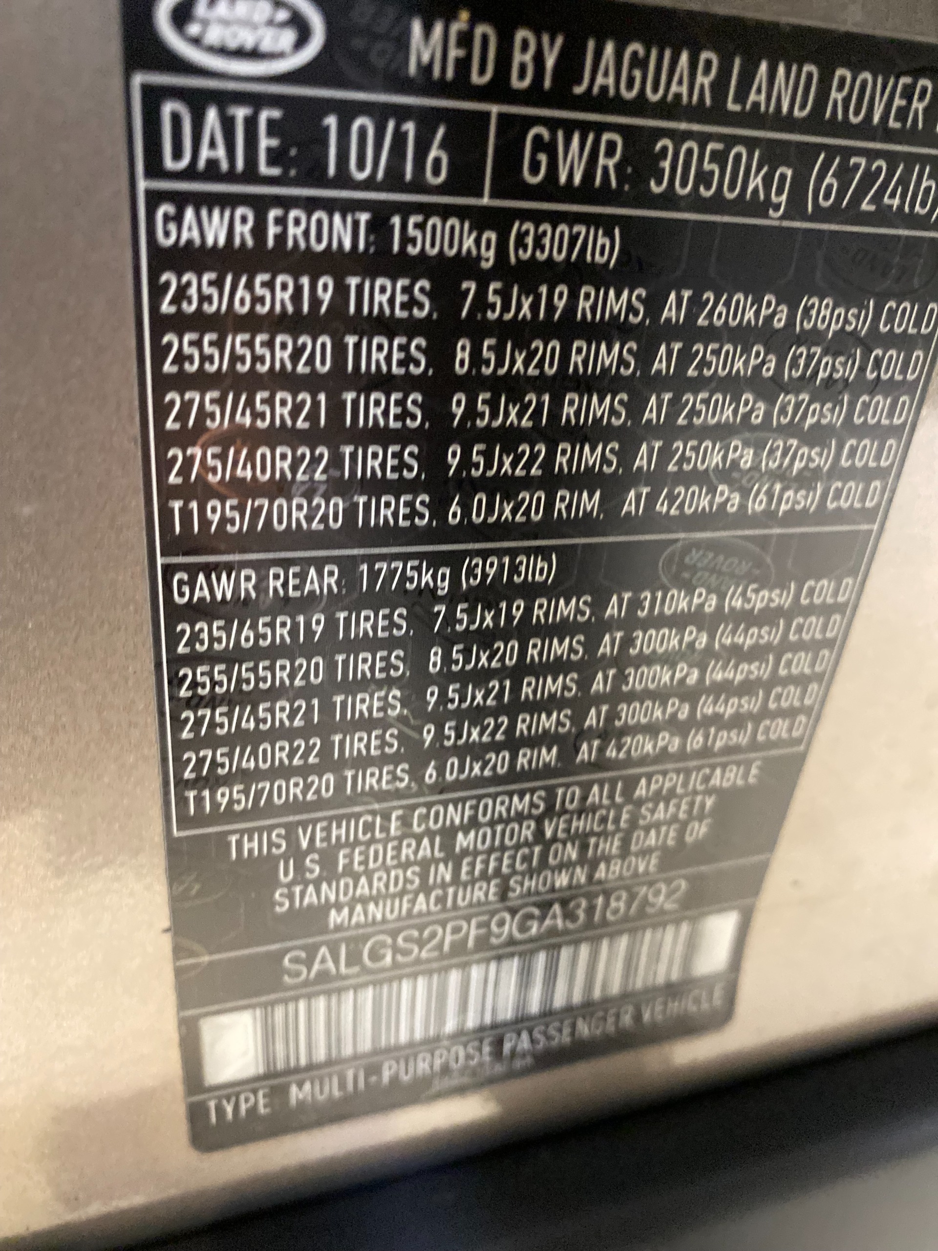 VIN: | SALGS2PF9GA318792 |